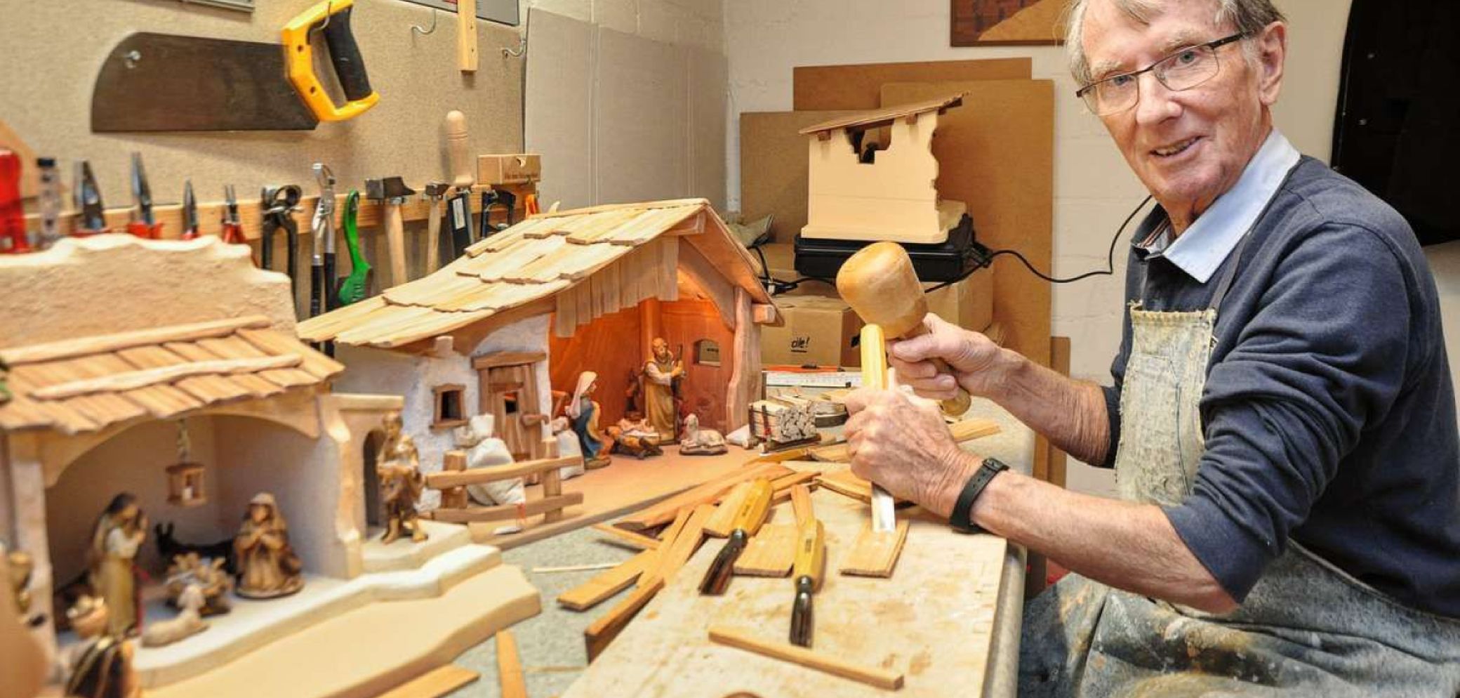 Der pensionierte Schreiner Walter Lips (81) fertigt in Hand-arbeit hölzerne Weihnachtskrippen. Bild: Franziska Herren