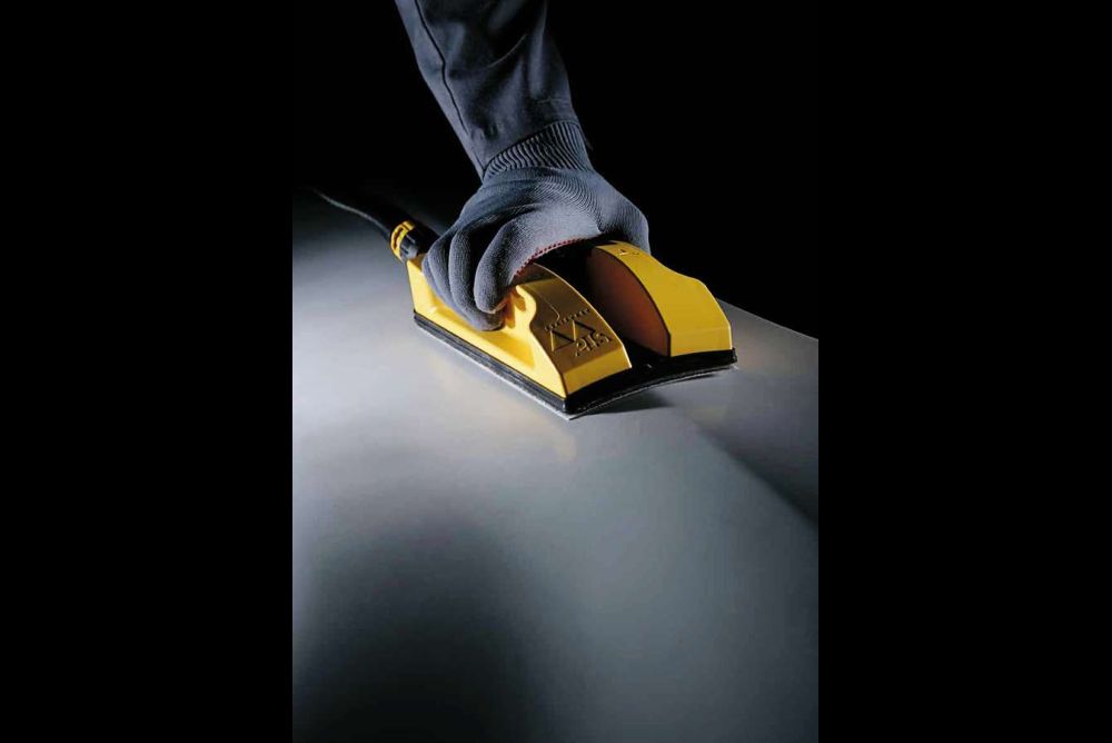 Gewölbte Flächen können nur dann perfekt egalisiert werden, wenn das Schleifmittel die gleiche Wölbung aufweist. Diese Gleichmässigkeit ist besonders bei hochglänzenden oder stumpfmatten Oberflächen gut sichtbar. Damit das sogar staubfrei möglich ist, hat Sia Abrasives drei Handblöcke im Programm. Bei allen werden die Schleifmittel mit Klett befestigt und der Schleifstaub direkt abgesaugt. Bei den Formaten 70 × 198 mm und 115 × 230 mm lässt sich die Wölbung in der Breite konkav (rund) oder konvex (hohl) einstellen. Für Bögen in Längsrichtung gibt es das Format 70 × 400 mm.