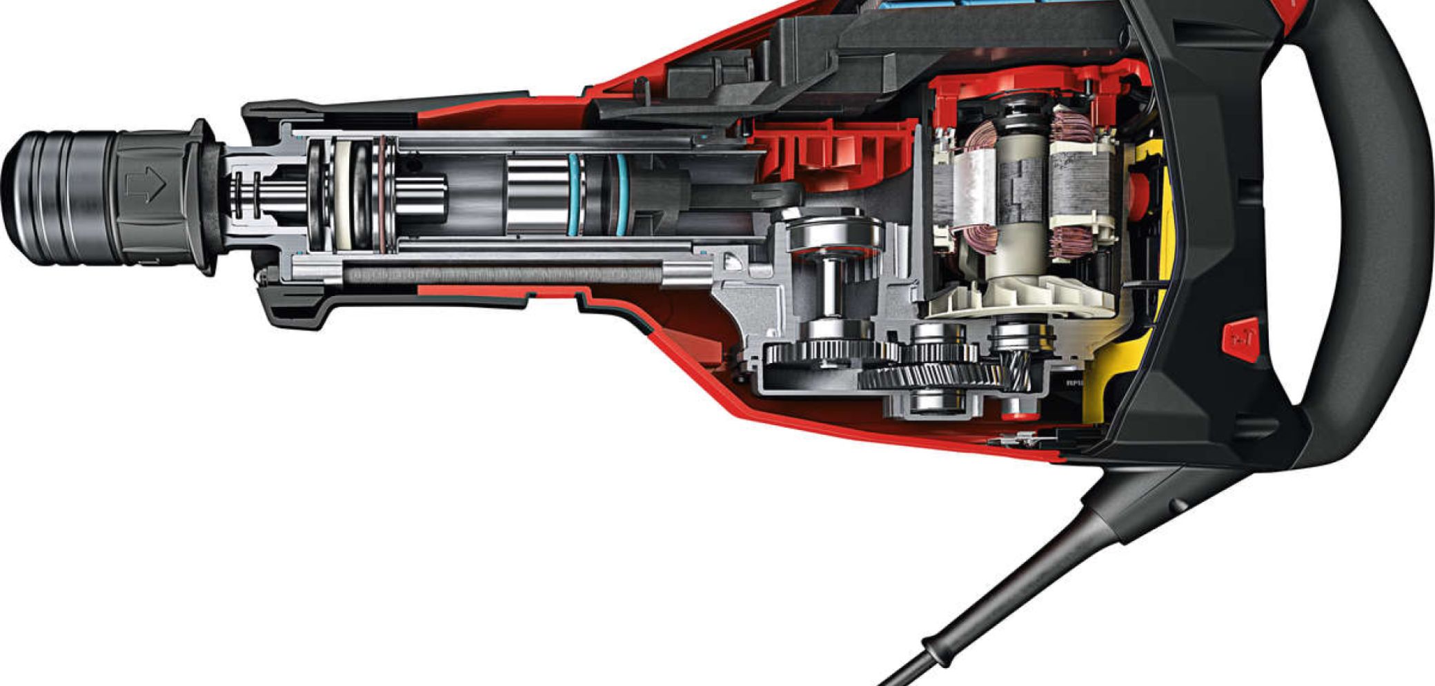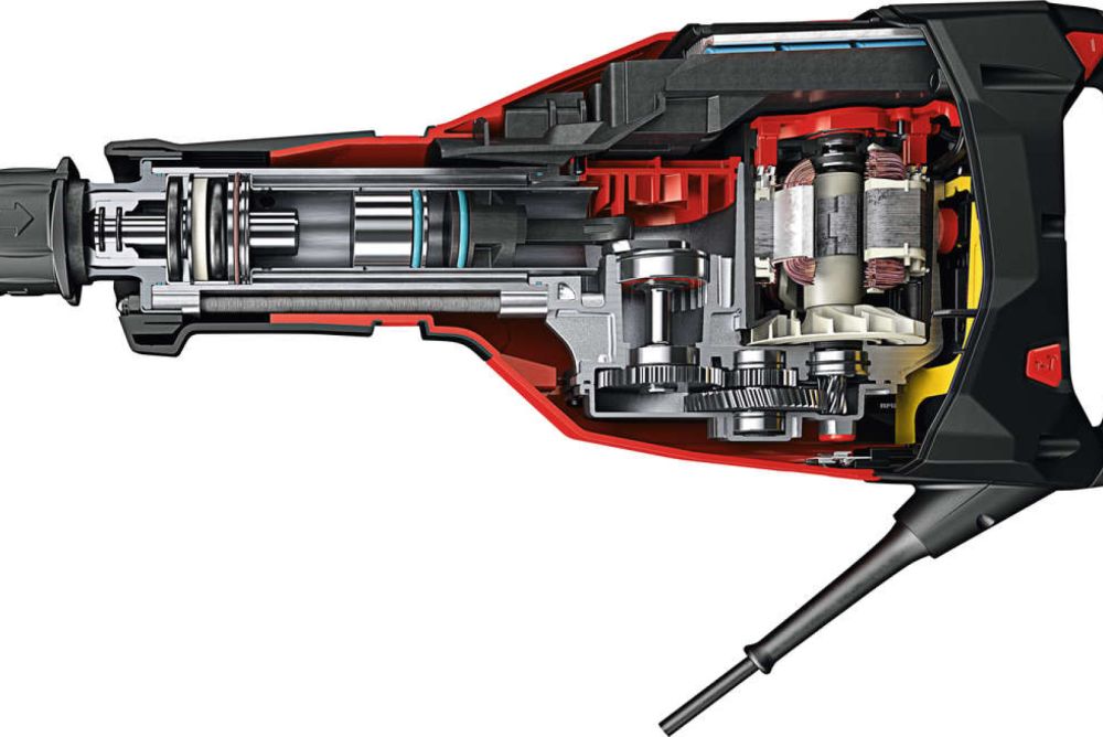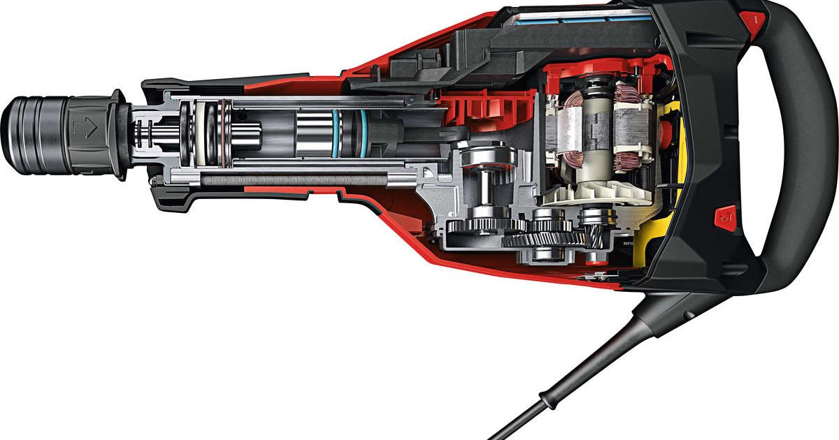 Mit seinen 12,5 kg und 1750 W Nennleistungsaufnahme schafft der Abbruchhammer bis zu 7800 cm³/min maximale Meisselleistung an mittleren bis schweren Abbrucharbeiten an der Wand und am Boden – das dank der «HI Drive»-Technologie. Die besteht aus dem effizienten Antrieb mit einem bürstenlosen SR Motor und einer dynamischen, abgestimmten Kraftübertragung. Die sensiblen Bereiche sind erstmals in drei voneinander getrennten Schmierkammern vor Staub geschützt. Die elektronische Motorsteuerung überwacht zudem permanent die Motorfunktion.