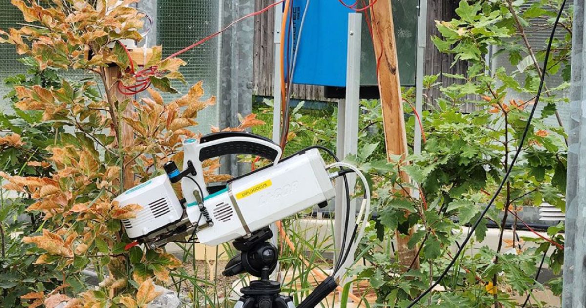 Eine Spezialkamera stellte fest, wann Hitze und Trockenheit Veränderungen an Eichenblättern hervorrufen. Bild: Alyssa Kullberg (WSL)