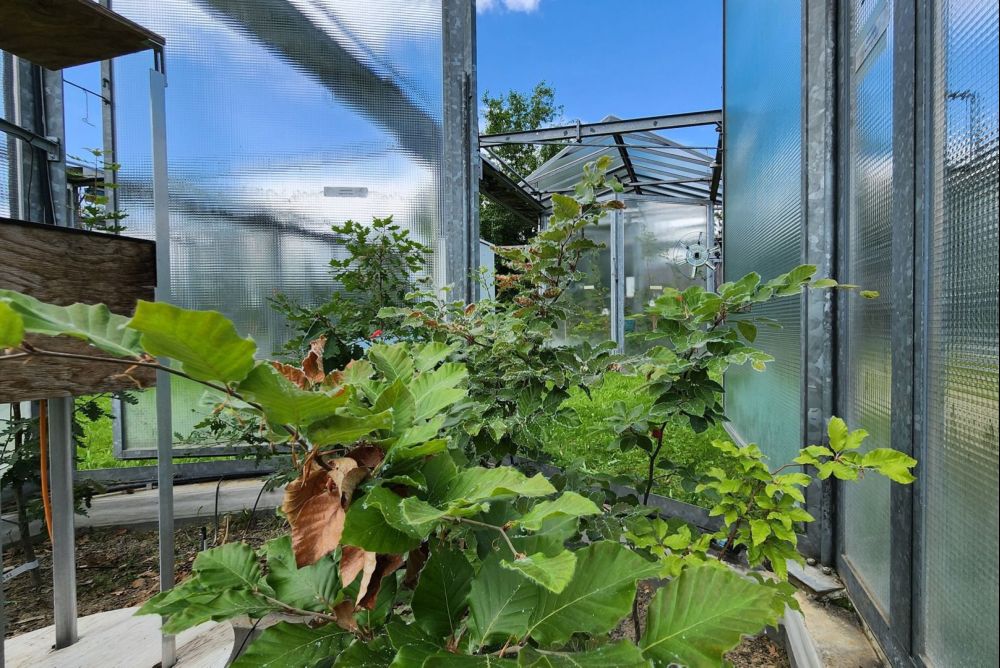 Auf dem Gelände der WSL in Birmensdorf ZH wachsen seit über fünf Jahren Buchen und Flaumeichen in Klimakammern. In diesen Miniaturgewächshäusern setzten die Forscher die Bäume unterschiedlicher Bodenfeuchtigkeit und Lufttemperaturen aus. Sowohl Hitze als auch Trockenheit stellt eine Stressquelle dar.