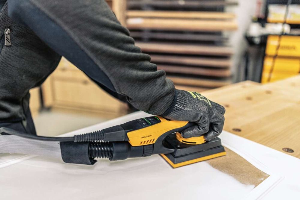 Die aufeinander abgestimmten Maschinenbewegungen und deren Geschwindigkeiten sind bei solchen Geräten massgebend für ihre Schleifqualität. Die Exzenterschleifer von Mirka für den Holzbereich haben einen Hub von 5 Millimetern.