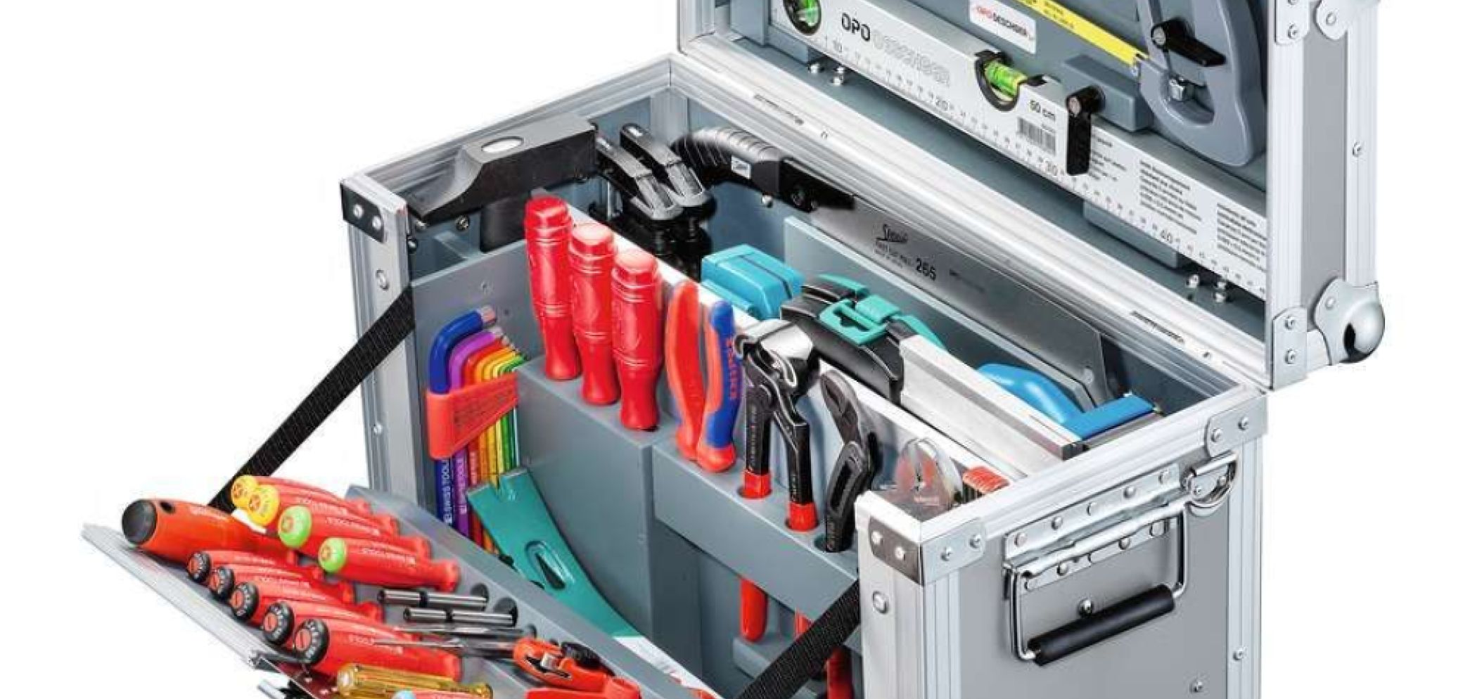 Die kompakte Abmessung und die hochwertige Verarbeitung machen die Werkzeugkiste «Smart» von Opo zu einem treuen Begleiter aller Holzverarbeiter, die ihr Werkzeug täglich mobil vor Ort einsetzen müssen. Mit einer Tiefe von 260 mm ist die Kiste sehr schlank gebaut. Sie ist mit einem 47-teiligen Qualitäts- werkzeug-Satz von PB Swiss Tools, Rali, Bahco, Knipex etc. bestückt. Dabei ist alles übersichtlich angeordnet und einfach zu entnehmen. Dank den vielen praktischen Vorrichtungen wie den klappbaren Haltegriffen und dem Schultertraggurt ist die Werkzeugkiste angenehm zu tragen. Dabei helfen auch die Aussenmasse von 550 × 420 × 260 mm und das Gesamtgewicht von 20,7 kg.