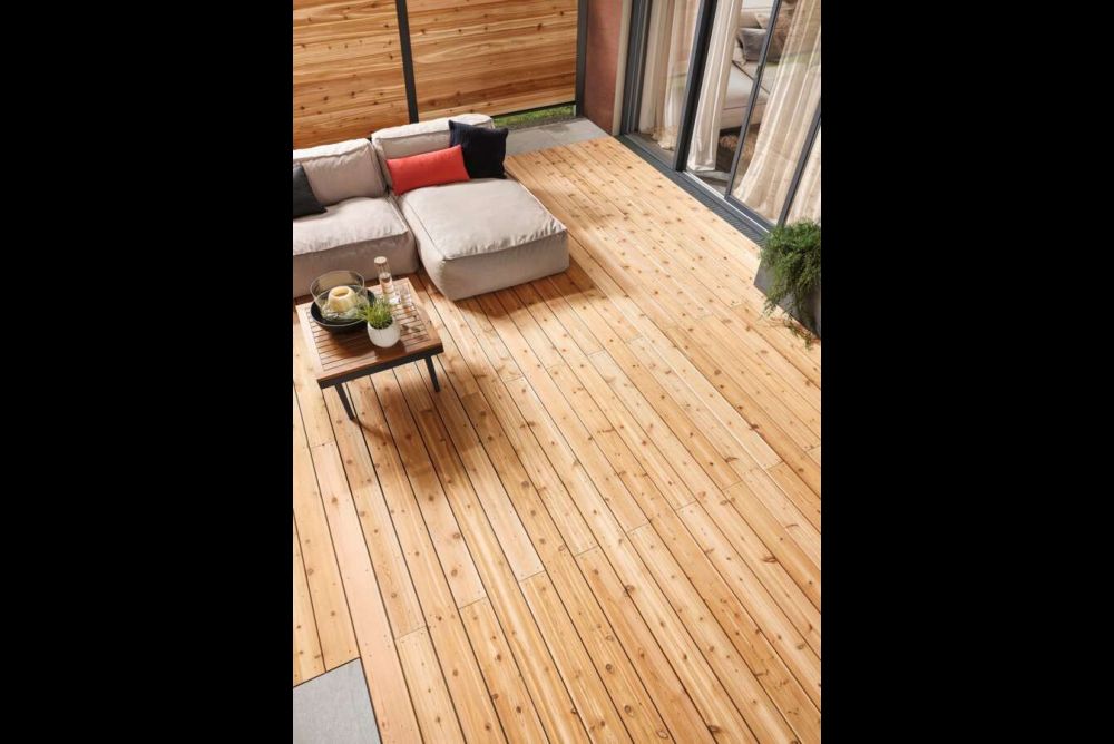 Die PEFC-zertifizierten Zedernholz-Terrassendielen aus dem Angebot von Osmo stammen von der kanadischen Westküstenregion und sind laut Firmenangaben extrem langlebig sowie witterungsstabil. Das Holz stammt aus den Bergregionen der Provinz British Columbia, wo die Bäume aufgrund der klimatischen Bedingungen besonders langsam und feinjährig heranwachsen, was dem Holz eine Widerstandsfähigkeit mit Dauerhaftigkeitsklasse 2 sowie eine attraktive Optik beschert. Als Terrassenbelag beeindruckt die Western Red Cedar mit ihrer besonderen Maserung und einem charaktervollen, lebendigen Farbspiel, das alle Nuancen von Hellgelb bis Dunkelbraun in sich vereint. Im Laufe der Zeit wittert das Holz gleichmässig ab und erhält auf Dauer eine silbergrau schimmernde Patina.