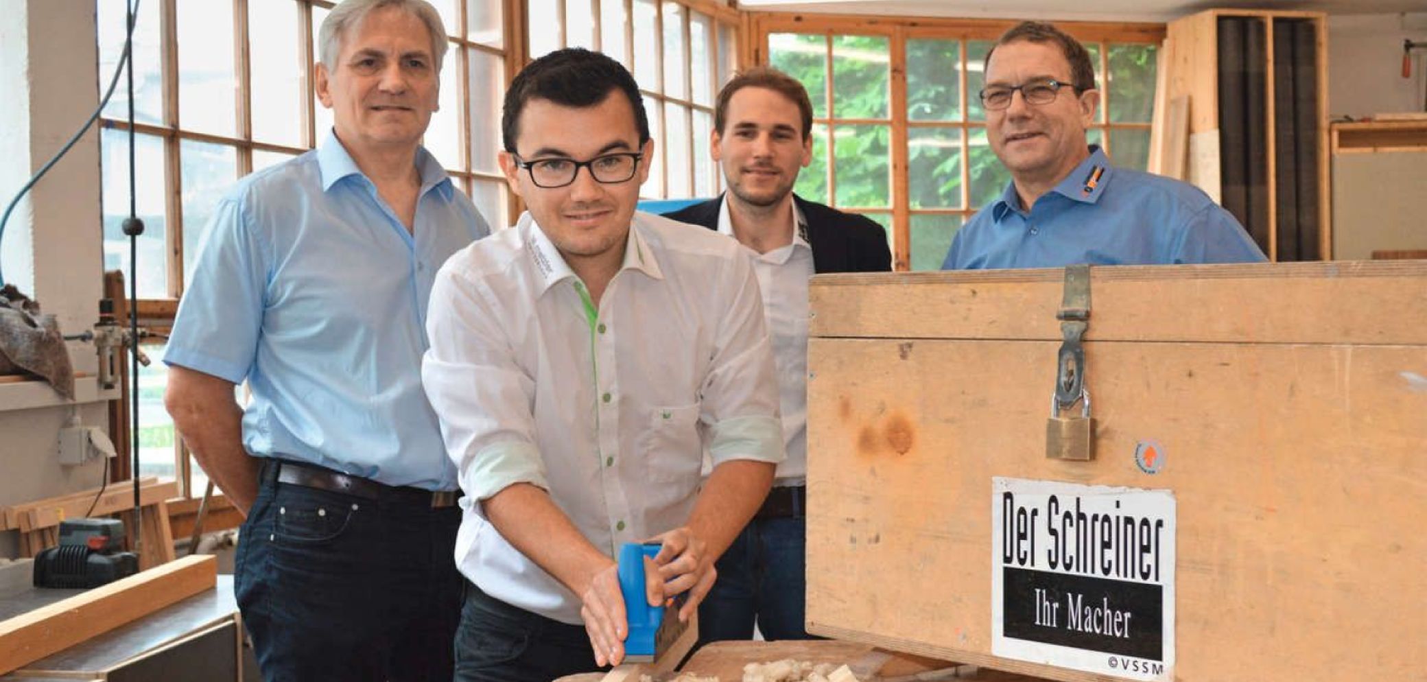 Im Rahmen der Rheintalmesse «Rhema» in Altstätten SG konkurrenzieren sich im nächsten Mai 35 Nachwuchsschreiner um die Qualifikation für die Schweizer Schreiner-Nati. Zum ersten Mal überhaupt findet die Schreiner-Meisterschaft im Rheintal statt. In der Schweiz werden im kommenden Jahr lediglich drei solcher Qualifikations-Meisterschaften durchgeführt. Marcus Gächter (links), Präsident der Vereinigung der Rheintaler Schreinermeister, freut sich auf den Anlass: «Es gibt selten eine Möglichkeit, unseren Beruf einer so breiten Öffentlichkeit vorzustellen.» Die Meisterschaft sei betreffend Nachwuchsrekrutierung von grosser Bedeutung.