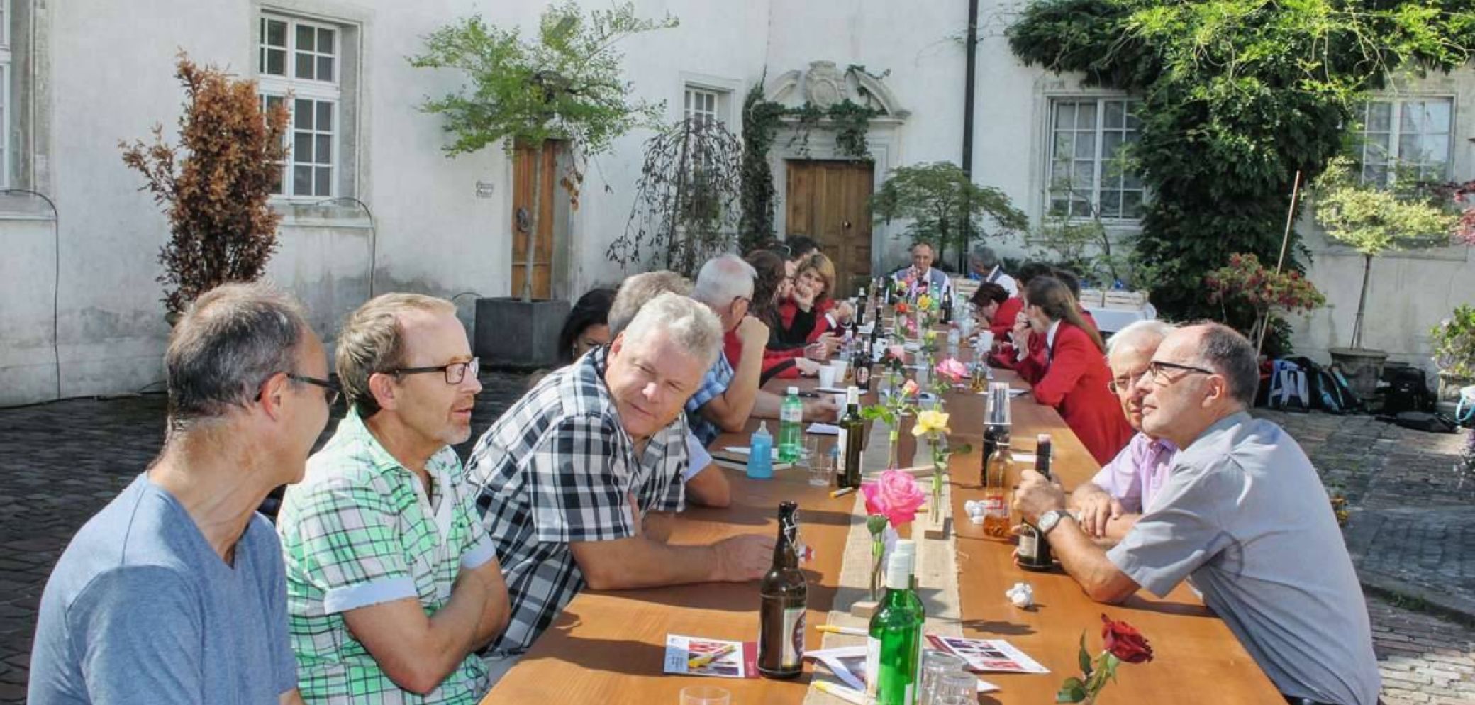 Bei Kaiserwetter feierten rund 400 Ehemalige, Ehrengäste und Offizielle das Jubiläum auf dem Schloss Klingenberg TG mit einem Mittagessen und bei geselligem Zusammensein. Dabei wurden viele Anekdoten über die Zeiten von anno dazumal ausgetauscht. Zeiten, welche bei manchen erst wenige Monate, bei anderen schon an die fünf Jahrzehnte zurücklagen.