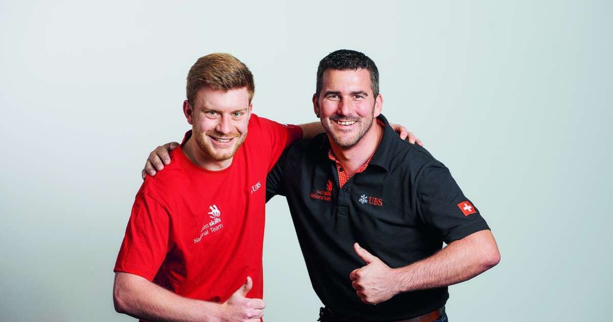 Zimmermann Elias Gogniat (links) mit seinem Betreuer Hansjörg Rechsteiner. Bild: Swiss Skills