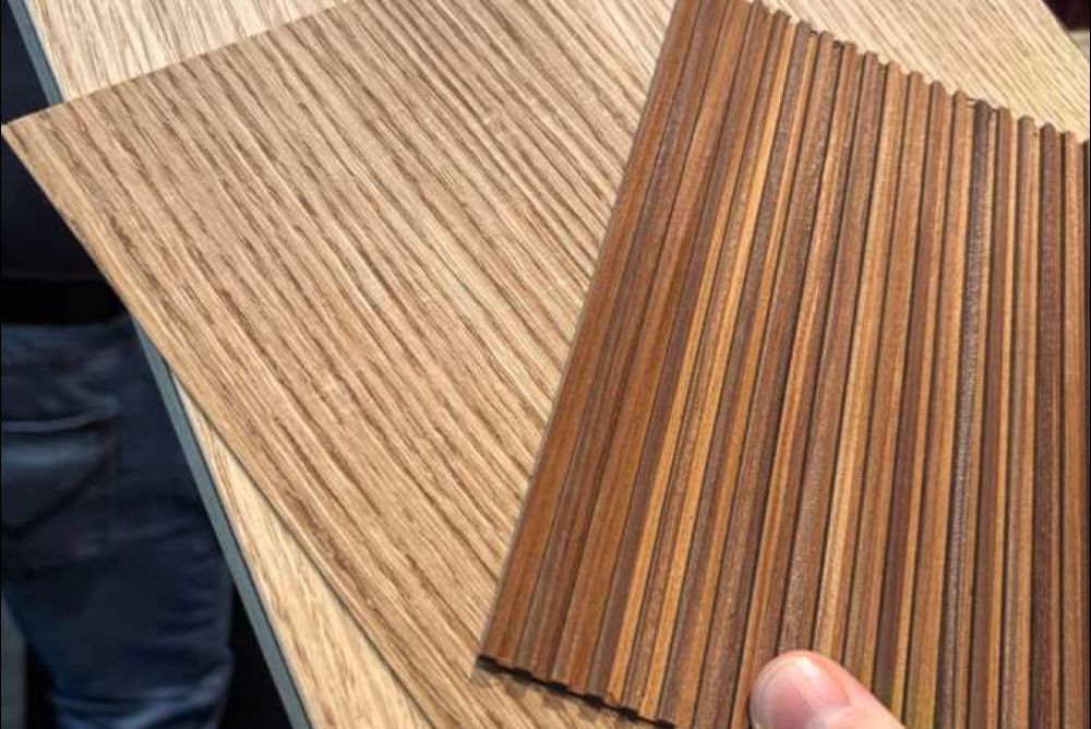 Die Formex AG aus Bubendorf BL zeigte verschiedene Anwendungsmöglichkeiten mit dem drei Millimeter starken «Xilowood». Der biegbare Furnierwerkstoff ist in drei Strukturen und verschiedenen Holzarten erhältlich.