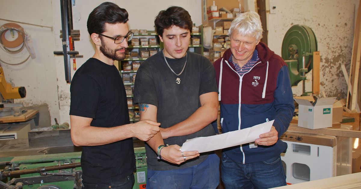 Die Lehrzeit gestaltet sich als Dreiecksbeziehung zwischen Ausbildungsbetrieb, Lernendem und den Schreinermachern. Aaron Roth weiss aber genau, wohin er sich mit seinen Fragen wenden kann: «Wenn es um die praktischen Arbeiten geht, frage ich meinen Chef. Für allgemeine Informationen zu meiner Ausbildung, zu Prüfungen oder zu Formularen, wende ich mich an die Schreinermacher.» – «Wir übernehmen eine Art Göttifunktion», sagt Hischier. «Wir stehen Lernenden und Berufsbildnern beratend zur Seite und versuchen bei Problemen zu vermitteln.»