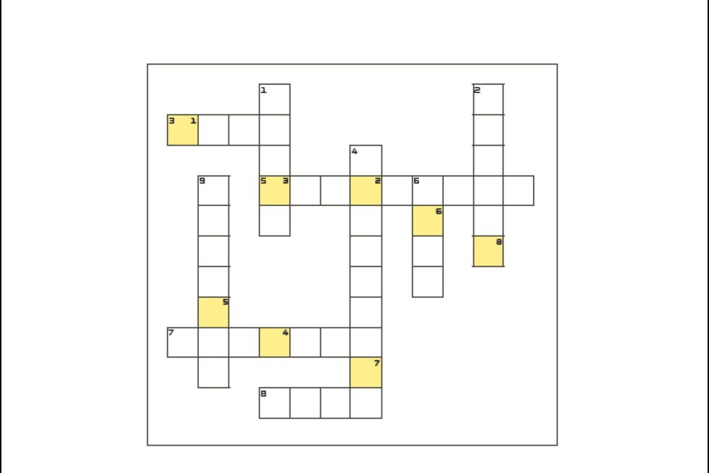 Das Lösungswort besteht aus acht Buchstaben (gelb nummerierte Kästchen).