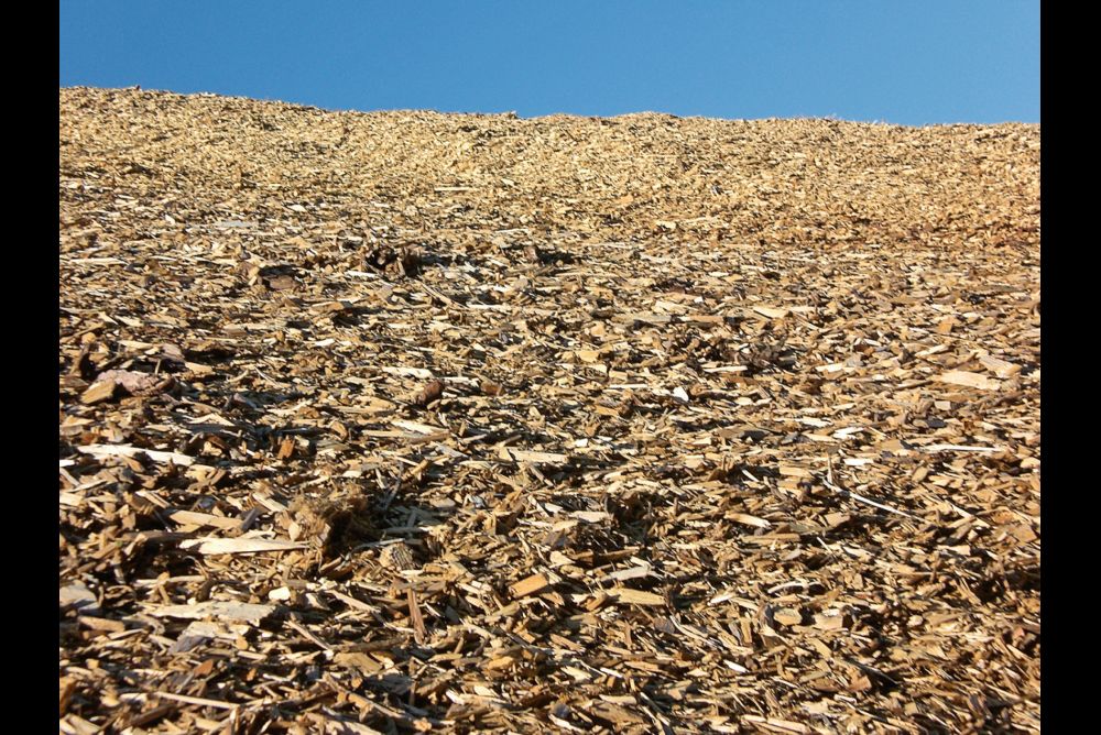 Auf diesem Schnitzelberg eines Pelletwerkes dürfen Späne aus Schreinereien nicht landen, denn Pellets bestehen aus naturbelassenem Holz. Bild: Pro Pellets Austria