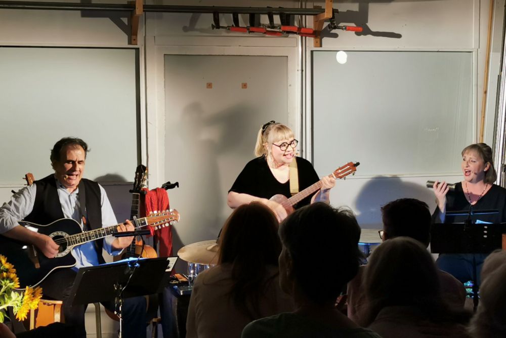Der Publikumsmagnet gastierte gleich zum Auftakt am Freitag in der zum Konzertraum umfunktionierten Schreinerei. Mit 150 Gästen war auch der letzte Sitzplatz auf der Tischfräse belegt, als Dodo Hug, Efisio Contini und Yvonne Baumer die Bühne betraten.