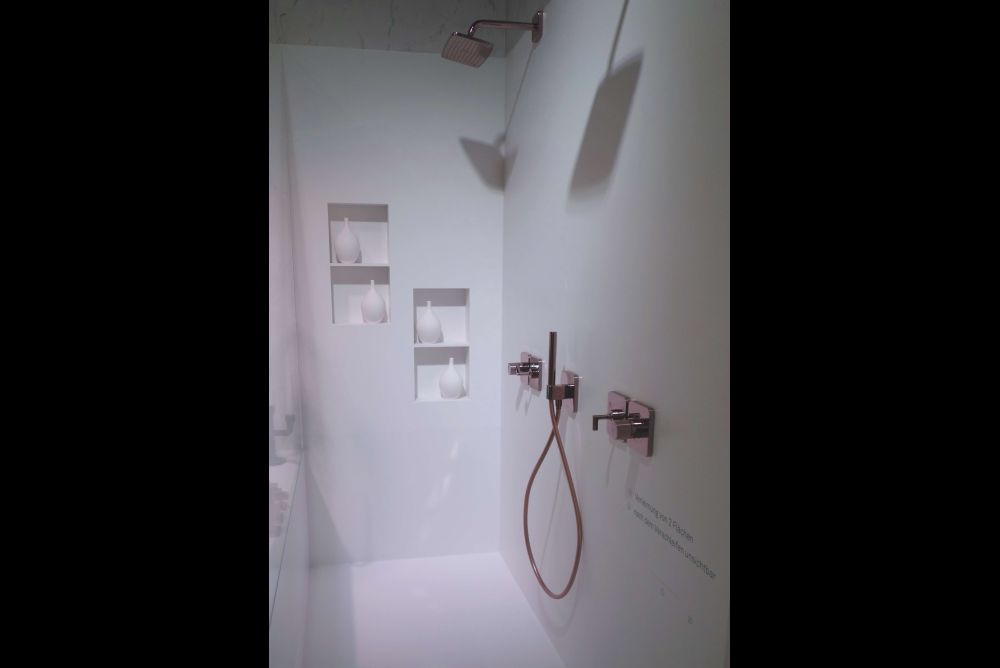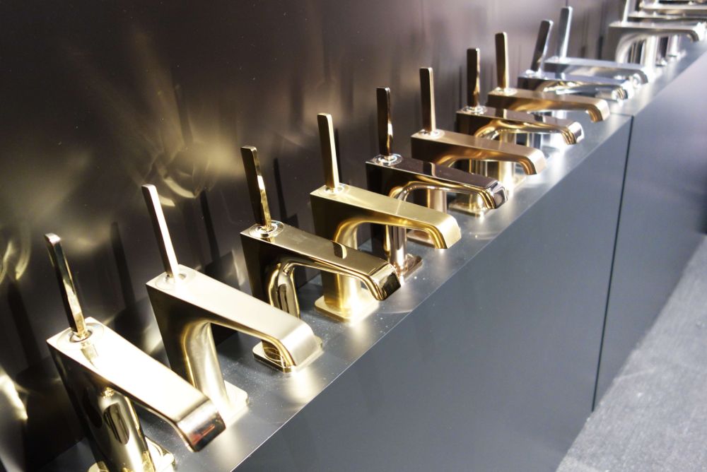 Die Armaturen sind in klaren und reduzierten Formen gestaltet. Die Duschköpfe werden immer dünner und dadurch leichter im Gewicht. Sie sind in verschiedenen Metalltönen erhältlich. Auffallend häufig waren an der Messe Armaturen in Roségold und mit matten Oberflächen zu sehen. Auch elektronische Armaturen haben Einzug in die Badestube gefunden. Sie merken sich verschiedene Temperaturen und Durchflussmengen und werden mit sanfter Berührung, per Knopfdruck oder berührungslos mittels Sprachsteuerung bedient.