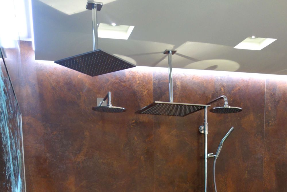 Die Duschen werden zunehmend barrierefrei gestaltet. Walk-in-Lösungen sind bei nahezu allen Herstellern zu finden. Duschwannen aus Corian sind dabei sehr beliebt. Sie kommen in einem Guss daher, da sie sich fugenlos zusammenfügen lassen. Und selbst der kleinste Raum kann mit einer beweglichen Glaswand zur Dusche werden. Dank 360-Grad-Scharnieren klappt man die Duschtüren einfach zur Seite.