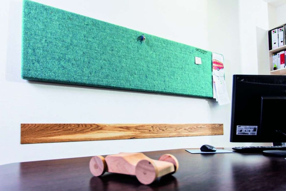 «Silentum» ist das Schallschutz- und Raumklima-System der Lehner Wolle GmbH für die Gestaltung zeitgemässer Lebens- und Arbeitswelten. Die Akustikfilze heben sich besonders durch ihre feinporige Oberfläche und den biozid- freien Wollschutz «Ionic Protect» ab, der gemäss Hersteller weltweit einzigartig ist. Dazu optimiert die spezielle Aufbereitung der Schafwolle deren generelle Fähigkeit, Schadstoffe wie Formaldehyde und Tabak nachhaltig zu neutralisieren. Mit der grossen Vielfalt an Farben und Designs wird ein breites Spektrum individueller Gestaltungsmöglichkeiten geboten.