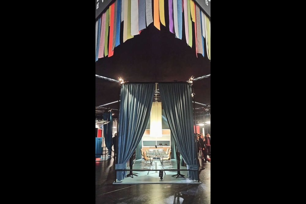Lo stand della Caimi ha fatto vivere ai visitatori lo spirito del loro progetto: «Un luogo in cui vivere esperienze multisensoriali, un ambiente emozionante dove lavoro e benessere si fondono insieme. Uno spazio in continuo movimento, che accompagna le persone a sperimentare nuove soluzioni e nuovi modi di lavorare, generando benessere e felicità.» Tale ideazione non risulta solamente essere una soluzione di spiccato design bensì possiede qualità tecniche di grande rilevanza. Le fibre di poliestere sono intrinsecamente ignifughe e sono in grado di ostacolare la crescita batterica grazie agli ioni d’argento presenti nella molecola.
