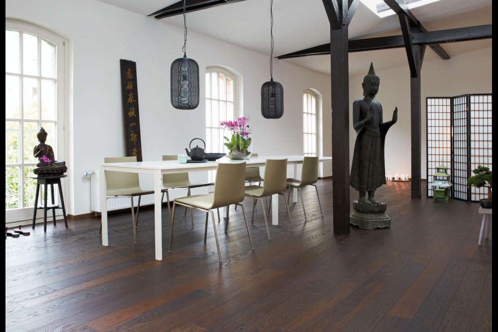 Besonders moderne Bauten fallen durch oft riesige Fenster oder ganz verglaste Fronten auf. Das führt zu lichtdurchfluteten Räumen. Kommen zusätzlich noch Oberlichter dazu, fühlt man sich schon mal fast wie in der freien Natur. Umso schöner ist diese Wirkung vor allem dann, wenn natürliche Oberflächen aus Holz dazukommen. Helle Hölzer lassen jede Konstruktion leichter erscheinen und farbige, dunklere Sorten wirken besonders warm und edel.