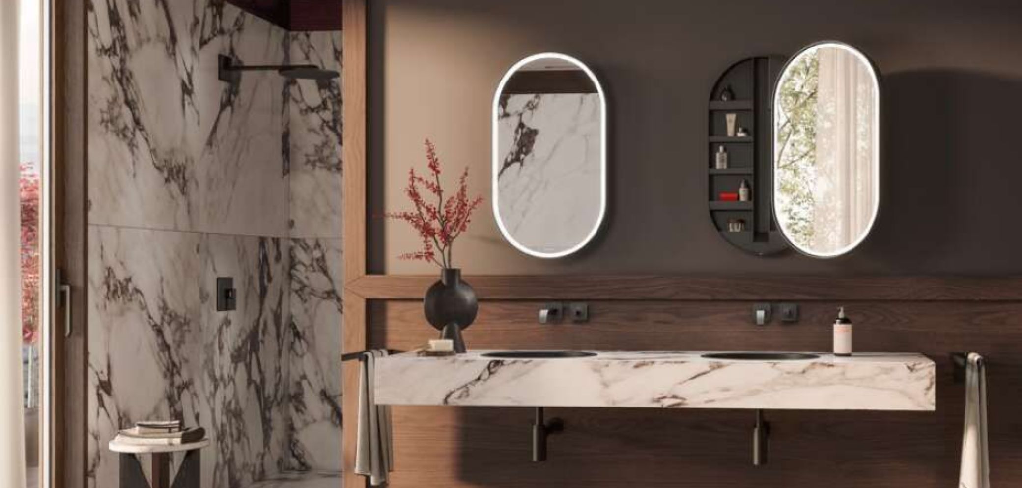 Der ovale Spiegelschrank «Float D2W» vom Schweizer Hersteller Schneider ist auch ein Designelement, das Eleganz und Funktionalität verbindet. Mit seinem Schwenkmechanismus scheint der Spiegel mühelos nach vorne zu gleiten – fast als würde er schweben. Die ovale Form trifft den aktuellen Zeitgeist und hebt ihn von herkömmlichen Spiegelschränken ab. Die direkte 360-Grad-Leuchtkraft bietet eine gleichmässige Ausleuchtung des Gesichts, ohne zu blenden. Seine «Dim2Warm»-Funktion ermöglicht es, die Lichtfarbe stufenlos von warmem Kerzenlicht mit 2000 Kelvin bis zu hellem Tageslicht mit 6500 Kelvin anzupassen. Über den Dimmtaster am unteren Rand des Spiegelschrankes oder in der Schneider-App kann die Beleuchtung mühelos an jede Stimmung oder Aktivität angepasst werden. Das sorgt für ein harmonisches Erlebnis im Badezimmer oder im Entrée. Der Spiegelschrank ist zusätzlich auch als reine Licht- spiegel-Version erhältlich – in oval und rund.