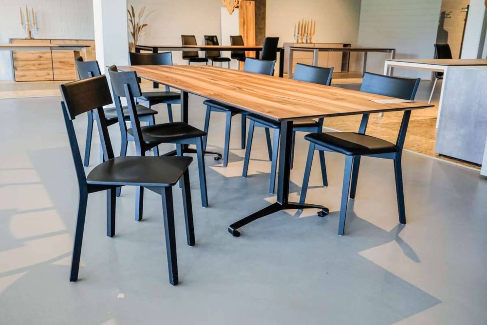 Während viele Händler auf immer noch billigere Produkte bei erstaunlich hohen Margen setzen, macht Seetal Swiss seinem Ruf edler Perfektion alle Ehre und stellt eine Klappeneinlage mit Dämpfung vor, welche gerade bei Glas- oder Keramiktischen von grossem Vorteil ist. Die Sitzqualität der sesselartigen Stühle wurde durch einen neuen Polsteraufbau markant verbessert, womit sich die Stühle definitiv auch für Sitzungsräume empfehlen – besonders mit dem neuen, handschuhweichen Leder.