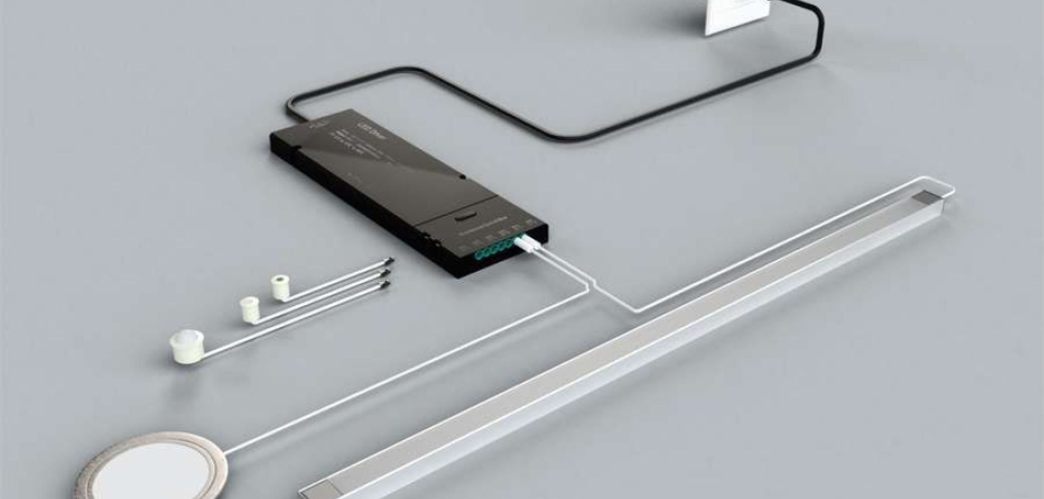 Das Netzteil ist die Zentrale einer Niedervolt-LED-Lichtanlage. Mit «SyBuc» bietet Bucher seine neueste Generation an Netzteilen an. Erhältlich sind die 17 mm flachen 24-Volt-Geräte in den drei Leistungsklassen 20, 60 und 90 Watt. Die mitgelieferte und aufgesteckte Controlbox ist mit dem 24-Volt-Stecksystem «Lin24» ausgestattet, für eine Umgebung bis 6 Ampere. Sie kann hohe Ströme, die in LED-Anlagen fliessen, sicher aufnehmen. Die Controlbox hat Stecker für passendes Zubehör wie einen berührungslosen IR-Tor-Sensor, PIR-Bewegungsmelder und LED-Touch-Dimmer.