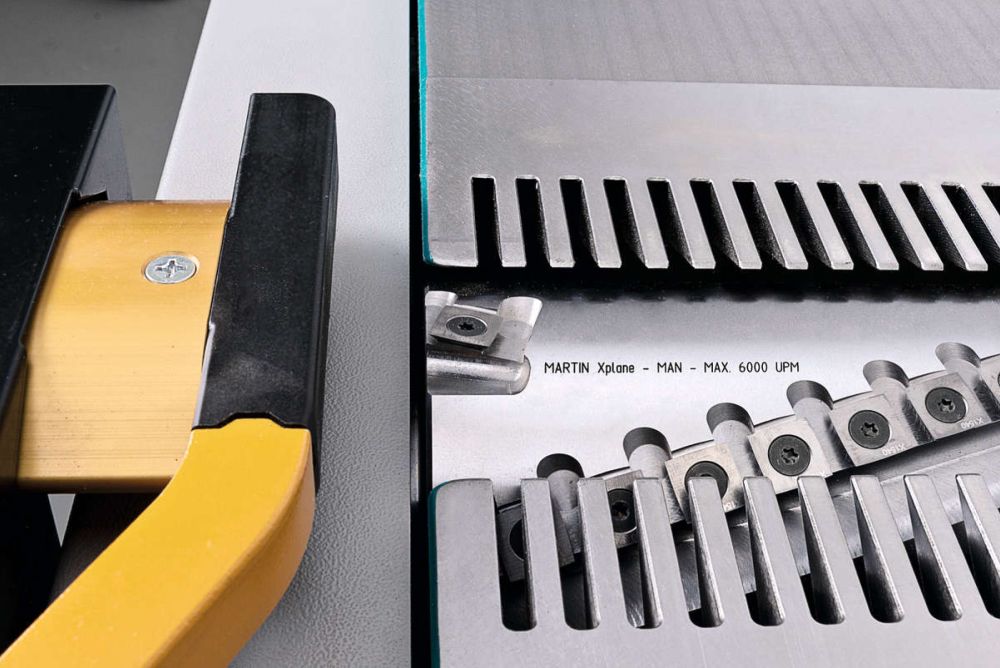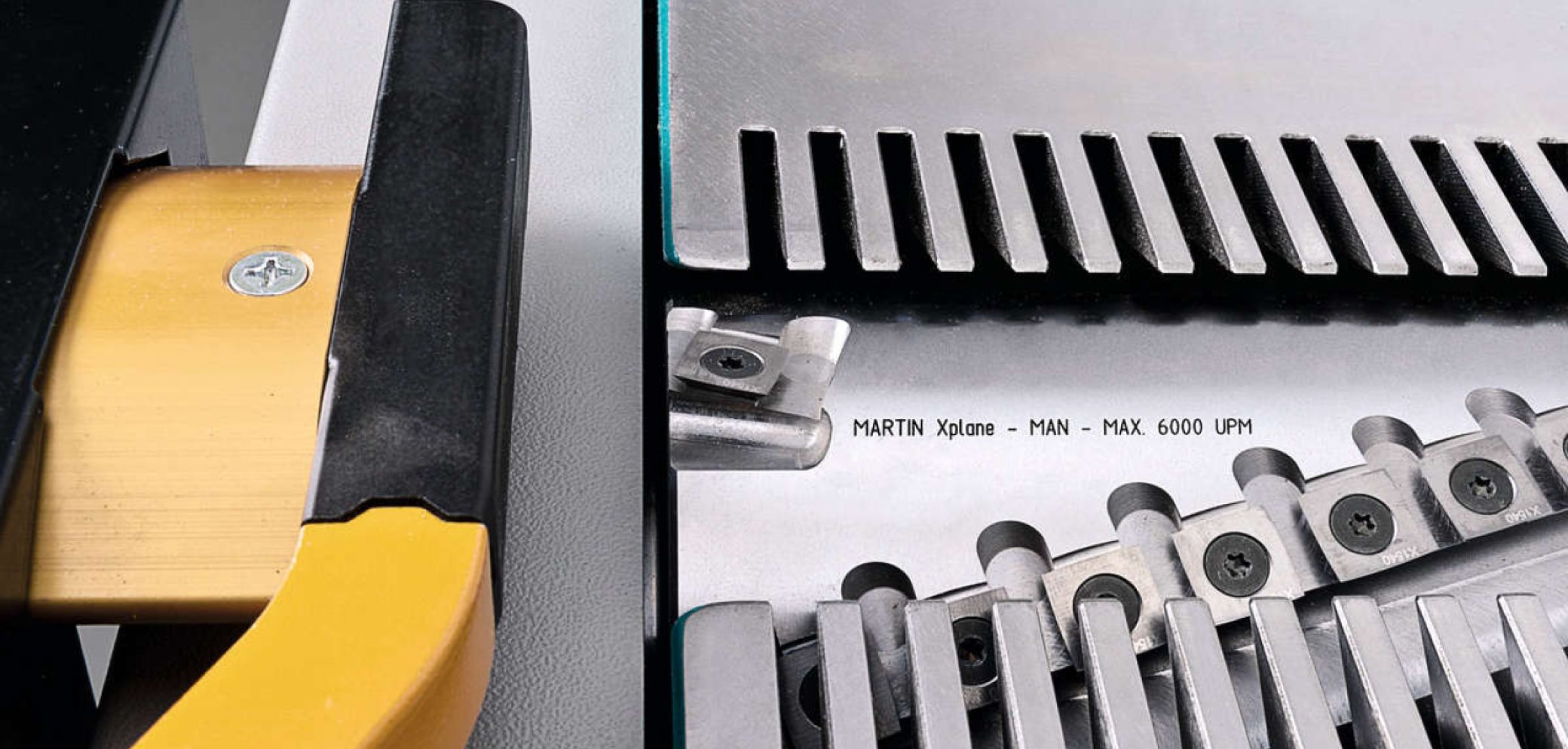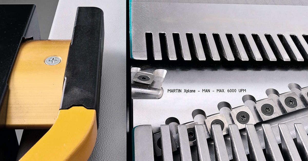 Die neue 3-reihige «Xplane»-Hobelwelle von Martin bietet bereits im Leerlauf Laufruhe und die Welle arbeitet leiser. Mit dem ziehenden Schnitt der speziell geschliffenen, bombierten «XS»-Messer sind weit bessere Oberflächenergebnisse, auch insbesondere an verwachsenen Stellen, zu erzielen. Ausrisse werden laut Hersteller durch die Auslegung der drei Messerreihen auf ein Minimum reduziert oder ganz vermieden. Die aus Hartmetall hergestellten Messer sollen eine etwa zwanzigfach höhere Standzeit als herkömmliche Hobelmesser haben. Die reduzierte Spangrösse und optimierte Spanabnahme verringern zudem den Kraftaufwand.