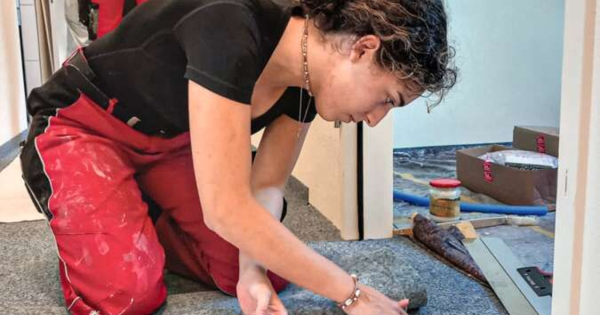 Leann Gantenbein verlegt den Teppichboden. Bild: PD