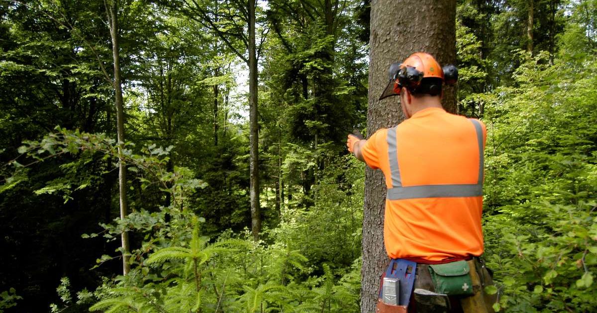 Wir befinden uns im Waldstück Tannbrun im aargauischen Staffelbach. Es ist 10 Uhr. Die Wetterfrösche haben den bisher heissesten Tag im laufenden Jahr angekündigt – im Schatten der Bäume ist es noch angenehm kühl. Nur wenige Minuten sind verstrichen, seit wir vom Forstbetrieb Oberes Suhrental mit dem materialbeladenen Geländewagen losgefahren sind. Keile, Baumkratzer, Schutzkleidung und eine Motorsäge braucht Dominik Lüthi aus Muhen AG, um einen Baum zu fällen. Das heutige Zielobjekt ist eine 15 Meter hohe Tanne mit umgeknicktem Spitz, einem Umweltschaden. Bevor der lernende Forstwart den Riesen fällen kann, muss er sich den Baum genau anschauen, Durchmesser, Höhe, Stamm, Krone sowie die Umgebung beurteilen und mögliche Gefahren abwägen...