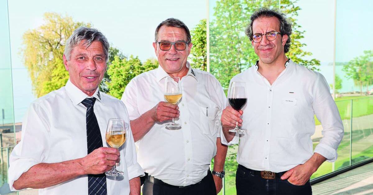 Verbandspräsident Ferdinand Riederer (v. l.) dankt Josef Popp für sein Engagement im Zentralvorstand und gratuliert Sven Manser zur Wahl in die Berufsschul-kommission. Bild: Ralph Dietsche