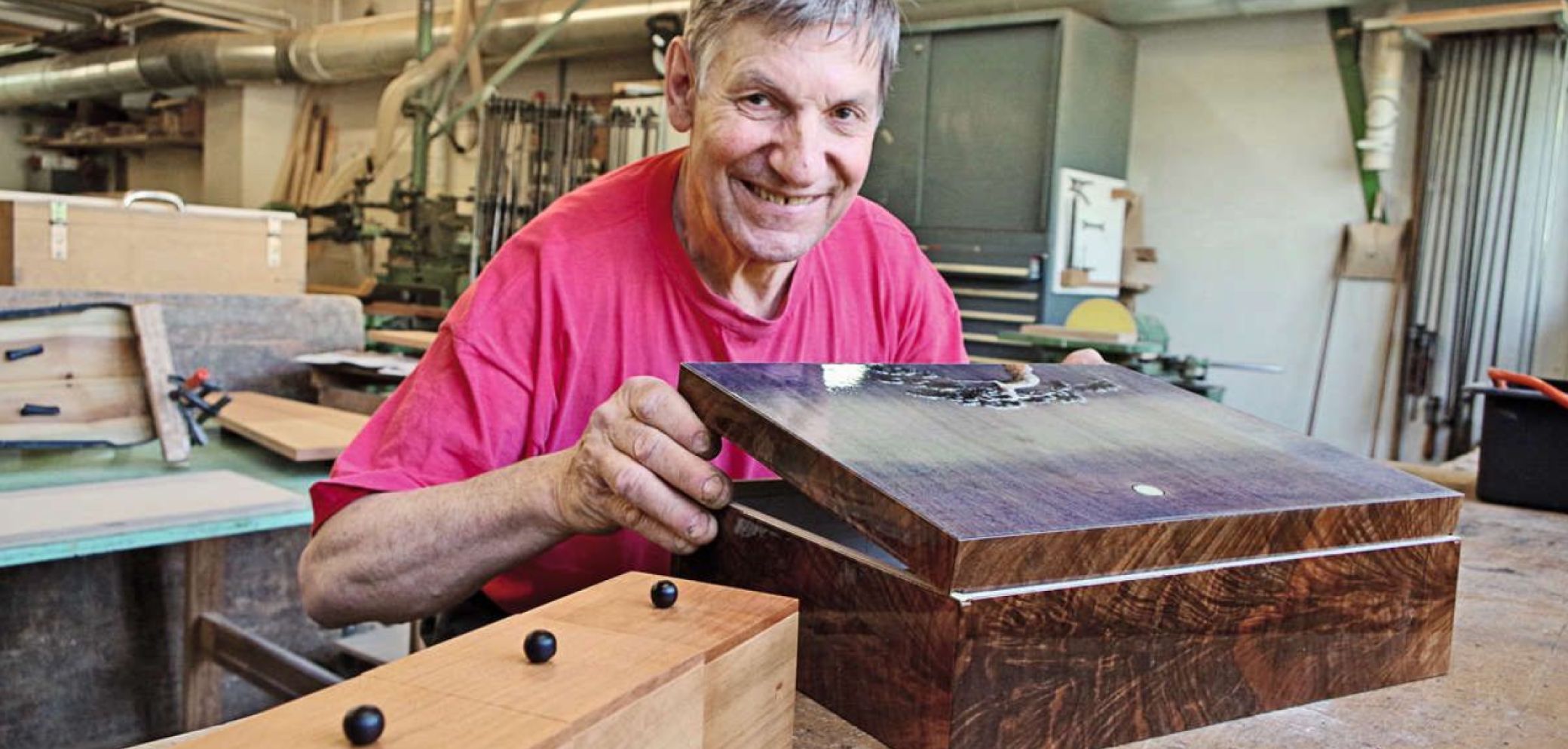 Liebhaberstücke, wie dieses Teekistchen aus Kirschbaumholz im Wert eines Kleinwagens, wird Hansruedi Ilg (69) auch nach seiner Pensionierung anfertigen. Bild: Beatrix Bächtold