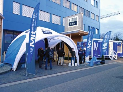 Fitmacher-Tour. Mitten im beschaulichen Dorf Herisau AR machten sich letzte Woche rund 90 Schreinerinnen und Schreiner für die Zukunft fit. Gefördert wurden das Fachwissen, die Kenntnisse rund um Weiterbildung und Mitarbeiterführung sowie die Lachmuskulatur.