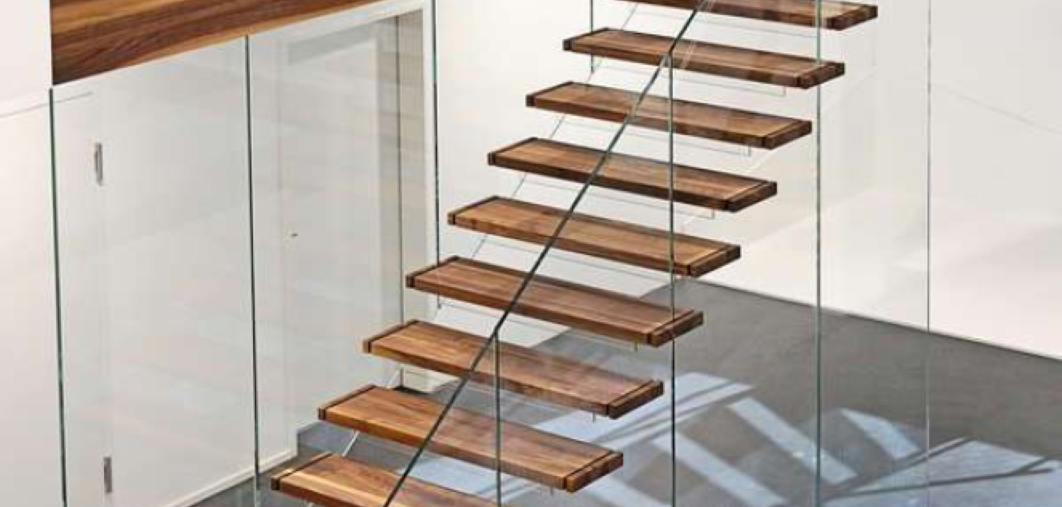 Die Columbus Treppen AG zeigt neu eine Glaswandtreppe. Die Stufen werden dabei an tragendes Verbundsicherheitsglas (VSG) geschraubt, das abgehängt oder auf den Boden gestellt werden kann. Auch als Glaswange wurde diese Bauart schon ausgeführt. Um die Stufen optisch durch das Glas laufen zu lassen, werden Abschnitte der Stufenstirne an der Aussenseite des Glases als Abdeckung für die Schraubenköpfe angebracht. Und selbst die Kinderschutzleisten sind aus VSG ausgeführt und werden unter die Stufenvorderkante eingenutet.