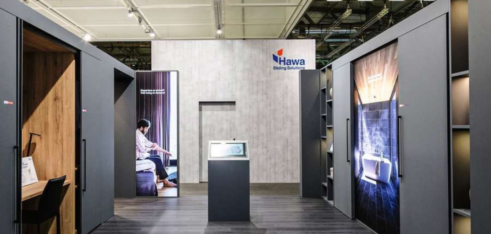 Am Stand von Hawa Sliding Solutions lassen sich innovative Schiebelösungen live erleben. Zu den Messe-Highlights gehört die neu designte Familie «Eku Combino» für Holztüren von 20 bis 80 kg an Schränken in Büros, Wohnungen und Geschäftsräumen. Sie bietet mehr Komfort, eine grössere Bandbreite an Türgewichten, erweiterte Gestaltungsfreiheit, ganzheitliche Dämpfungstechnologie und einfache, schnelle und werkzeuglose Montage. Ein weiteres Highlight ist das für den Innovationspreis nominierte, schalldämmende Schiebebeschlagsystem «Hawa Suono». Damit ausgestattete Schiebetüren schirmen Lärm bis 39 Dezibel und Gerüche ab. Das Messeteam bietet den Besuchern fach- kundige Beratung auf dem Weg zu individuellen Lösungen.