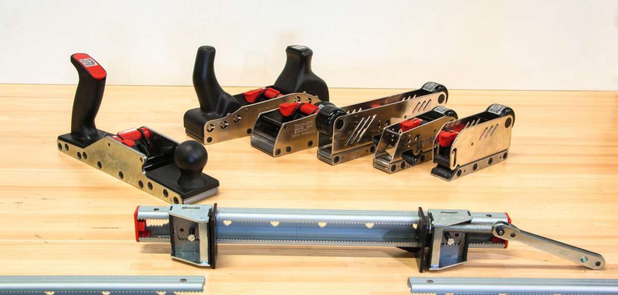 Die von Samvaz SA in der Schweiz entwickelten und produzierten Schraubstöcke «Rali Press» sind noch einmal verbessert worden. Der Schwerpunkt liegt auf Effizienz und Benutzerfreundlichkeit. Die neue, komplett überarbeitete Version heisst nun «Rali Press Evolution» und passt perfekt zur «Evolution»-Serie der «Rali»-Handhobel. Der «Rali Press» lässt sich an jedem Werkzeugkasten oder Holzbrett befestigen und ermöglicht im Handumdrehen das Festklemmen von allerlei Gegenständen – und das mit automatischer Verriegelung der Schraubstock-Blöcke. Das Einspanngerät wird bündig mit der Oberfläche der Werkbank montiert, sodass das Befestigen von Platten, Türen, Kanteln, Balken oder Brettern sehr einfach ist. Es kann sowohl für die waagrechte als auch für die senkrechte Befestigung benutzt werden. Dank seiner mobilen Flanschen passt es sich an alle Teile an, egal ob die einzuklemmenden Seiten parallel sind oder nicht. Mittels des Spannhebels kann eine Spannkraft von einigen Gramm bis 1,5 Tonnen erreicht werden. Die Standardgrössen der «Rali Press Evolution» gehen von 730 bis 1460 mm. Die 365 mm langen Schienen sind allerdings frei kombinierbar, sodass man jederzeit mit einer oder mehreren zusätzlichen Schienen verlängern kann.