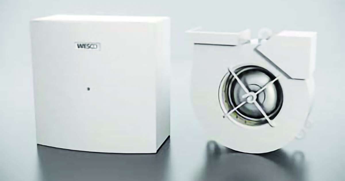 Der Einrohr-Bad-WC-Lüfter von Wesco zieht die Luft über die Motorenachse an und bläst sie um 90 Grad versetzt (radial) wieder aus. Durch den hohen Luftdruck ist der Ventilator für den Anschluss an eine zentrale Steigleitung geeignet. Der Luftfilter kann unkompliziert gewechselt werden, und dank der geschlossenen Kugellagerung ist der Lüfter wartungsfrei.