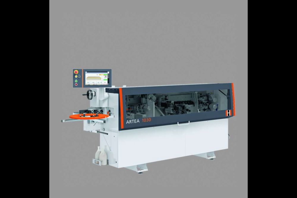 Mit der Artea 1030 präsentiert Holz-Her sein Einstiegsmodell im Profibereich der Kantenanleimmaschinen. Die Ausstattung mit Fügen, Verleimteil, Eckkopieren sowie ein kompletter Finishbereich mit Radiusziehklinge, Flächenziehklinge, Schwabbeln und Sprühen finden auf nur 3700 mm Länge Platz. Auch bei seiner kleinsten Bau- reihe setzt der Hersteller kompromisslos auf die bewährte Glu-Jet-Nullfugenoptik und stattet die Anlage serienmässig mit seiner Kleberauftragsdüse aus. Neben der Nullfuge beherrscht sie auch die Anwendung mit EVA und wasserfesten PUR-Kle- bern im schnellen Wechsel.Die Kantenanleimmaschine ist dank hochauflösendem 15,6-Zoll-Farb-Touchscreen interaktiv zu bedienen. EVA oder PUR wählt der Anwender auf Knopfdruck, und die richtige Verarbeitungstemperatur ist damit automatisch eingestellt. Gerüstet wird die Maschine mit dem neuen Visual-Setting-System. Dieses stellt als digitales Logbuch alle Einstellwerte für die Digitalzähler und Druckmanometer zur Verfügung, um die Maschine schnell und sicher zu rüsten. Neu ist auch die Kleberbibliothek. Mit ihrer Hilfe lassen sich bis zu vier Kleberprofile verwalten. Diese stehen dem Bediener – je nach Anwendung – auf Knopfdruck zur Verfügung. PUR, EVA, transparenter oder weisser Kleber sind somit zu jeder Zeit mit der richtigen Verarbeitungstemperatur und den richtigen Druckeinstellungen abrufbar und ermöglichen dem Anwender eine kompromisslose Kantenqualität.